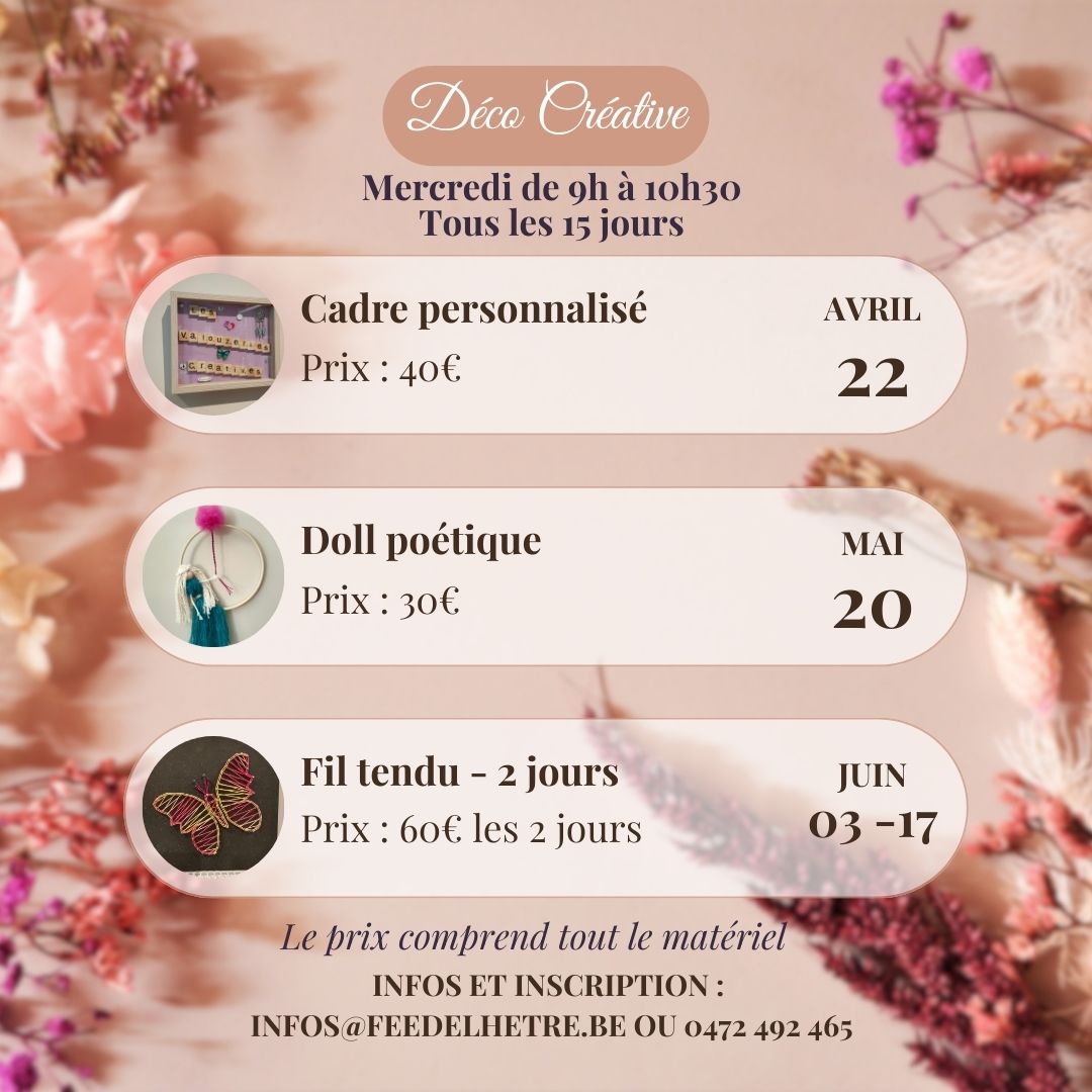 💰 200 € pour le cycle complet, 35€ l’atelier unique
